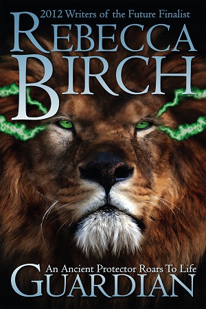 I am particularly pleased with the cover for Guardian, a contemporary fantasy novelette which was released as an ebook this past week. I created the lightning myself and changed/enhanced the color of the lion’s eyes, and I am so impressed with what my husband managed to do with the text elements and work with InDesign.
